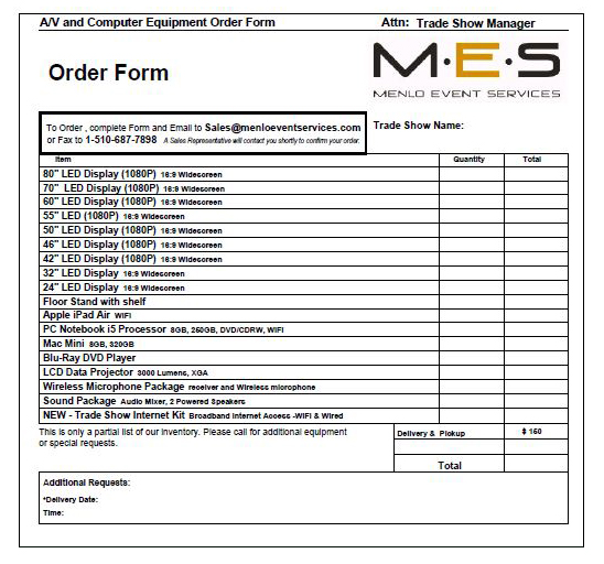 Request a Quote Notice: JavaScript is required for this content. Trade Show Order Form Download Trade Show Order Form